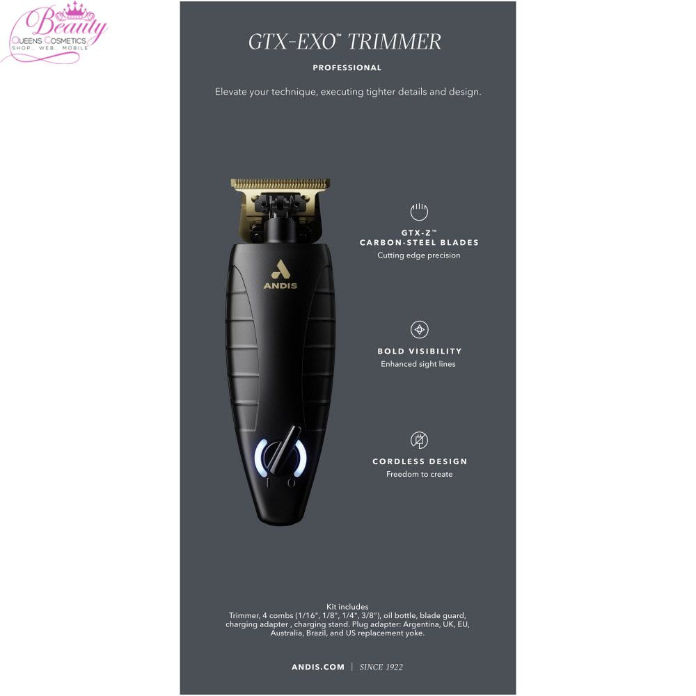 Better than ever. Take your styling and creativity to the next level with the GTX-EXO Trimmer. While keeping everything you love about the pro standard T-Outliner, precision has taken a huge leap forward. An intuitive shape gives crystal clear visibility as you outline, shave and fade. The better-than-ever GTX-Z blades are retooled to cut closer than before and can be zero-gapped and are finished in Gold, without modification. Cordless means more flow and less restriction.