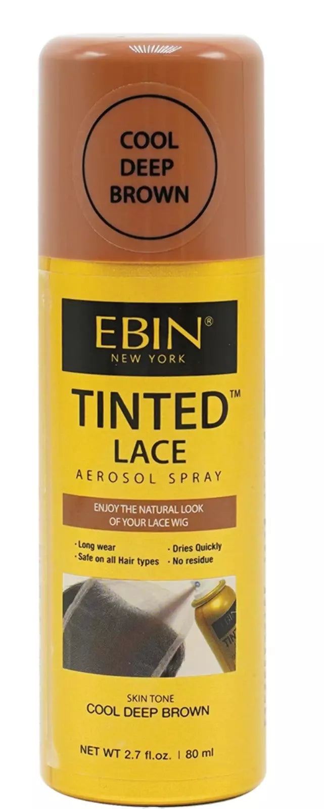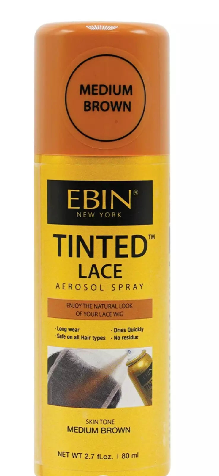 Find your perfect shade with our Tinted Lace. Tinted lace is an aerosol spray designed to give your lace wigs a more natural look. These quick, pigmented, and buildable sprays were formulated to match your skin tone and make the lace disappear. Your bleaching days are over, just spray & slay!