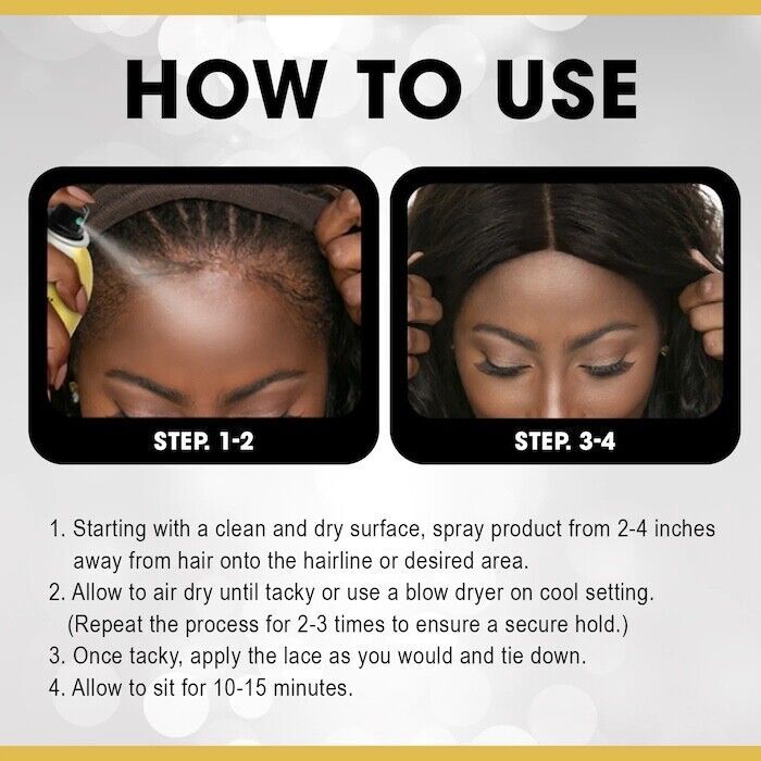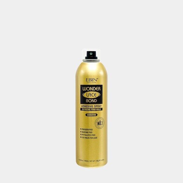 Introducing EBIN's Wonder Lace Bond Adhesive Spray - the perfect solution for those with sensitive skin. This carefully formulated product provides a secure hold without causing any irritation, making it gentle enough for everyday wear. With its fast-drying formula, there is no need to wait for hours for the adhesive to set. Plus, it leaves no residue or build-up, ensuring a clean and comfortable experience. And with its powerful hold, you can trust that your lace front or full lace wig will stay in place all day long. Get your 180 ml/6.08 fl.oz. bottle now and experience the wonder of EBIN's Wonder Lace Bond Adhesive Spray.