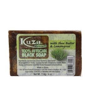 KUZA 100% African Black Soap With Shea Butter & Lemongrass-114g/4oz
