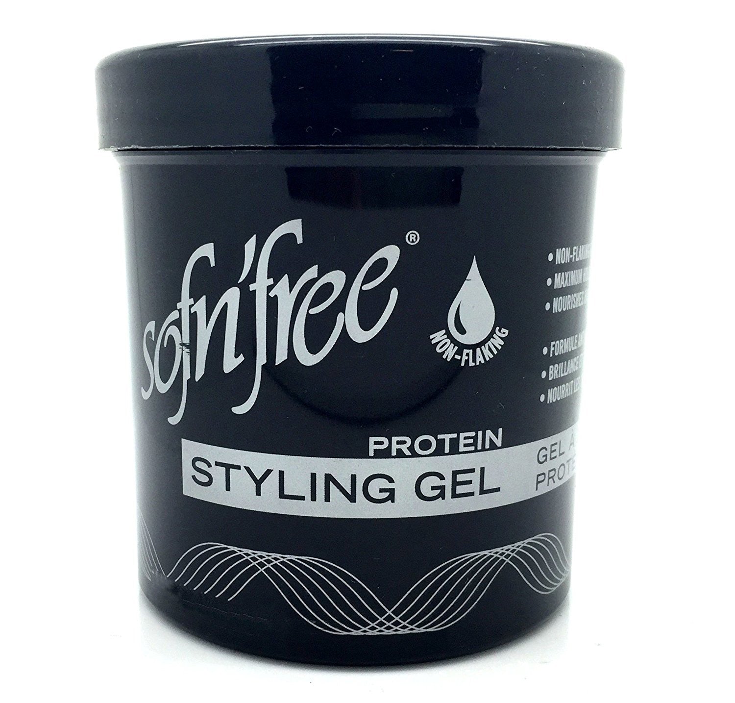 Get sleek and stylish hair with the Sofn'free Protein Styling Gel in Black. This 170g/6oz gel is perfect for adding hold and definition to any hairstyle.